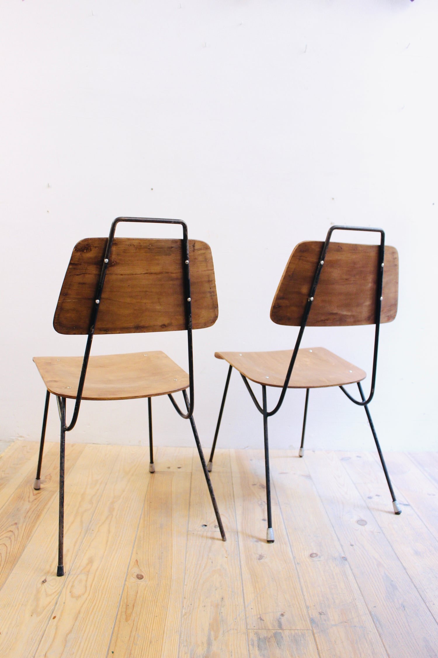 Sillas de Ferrocolor Vidal Hermanos . Años 60. Con signos evidentes de uso y desgaste.
